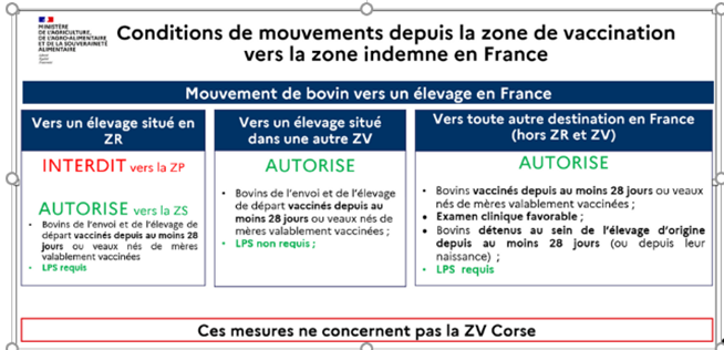 3.2- Pour ce qui concerne les bovins de zone vaccinale (ZV), les conditions de sortie en France sont les suivantes :
