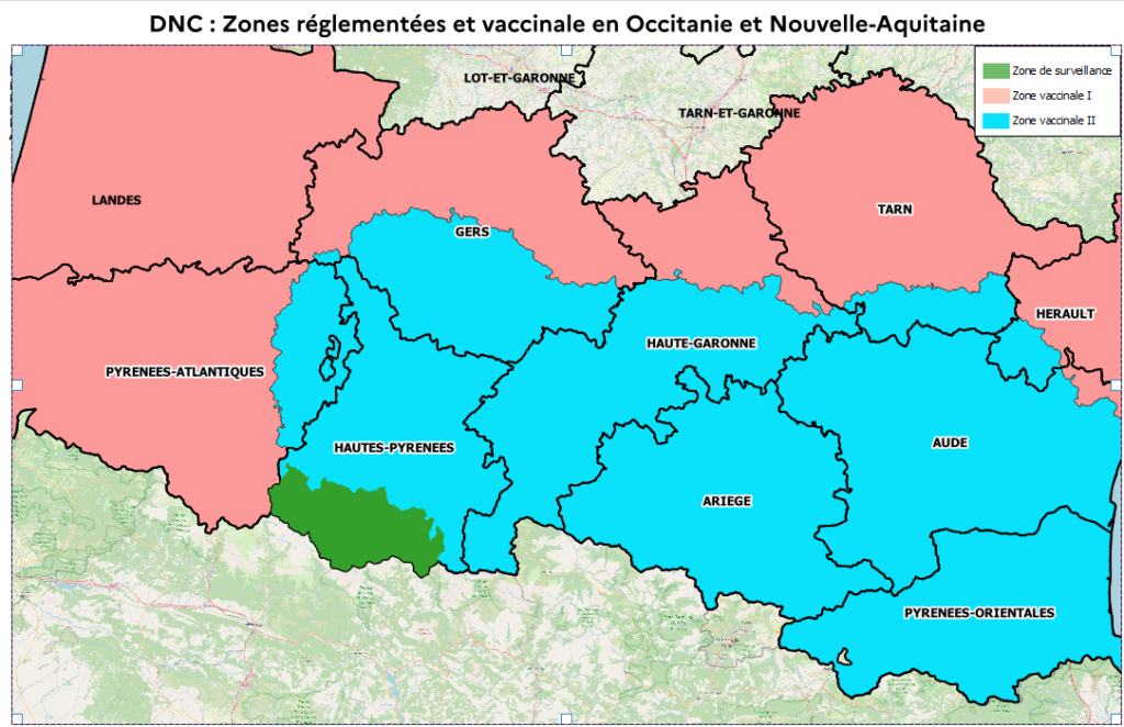 Le zonage autour de ces deux foyers englobe une partie du département du 65, dont 26 communes passent en zone de surveillance, dans laquelle les mouvements de bovins sont interdits.